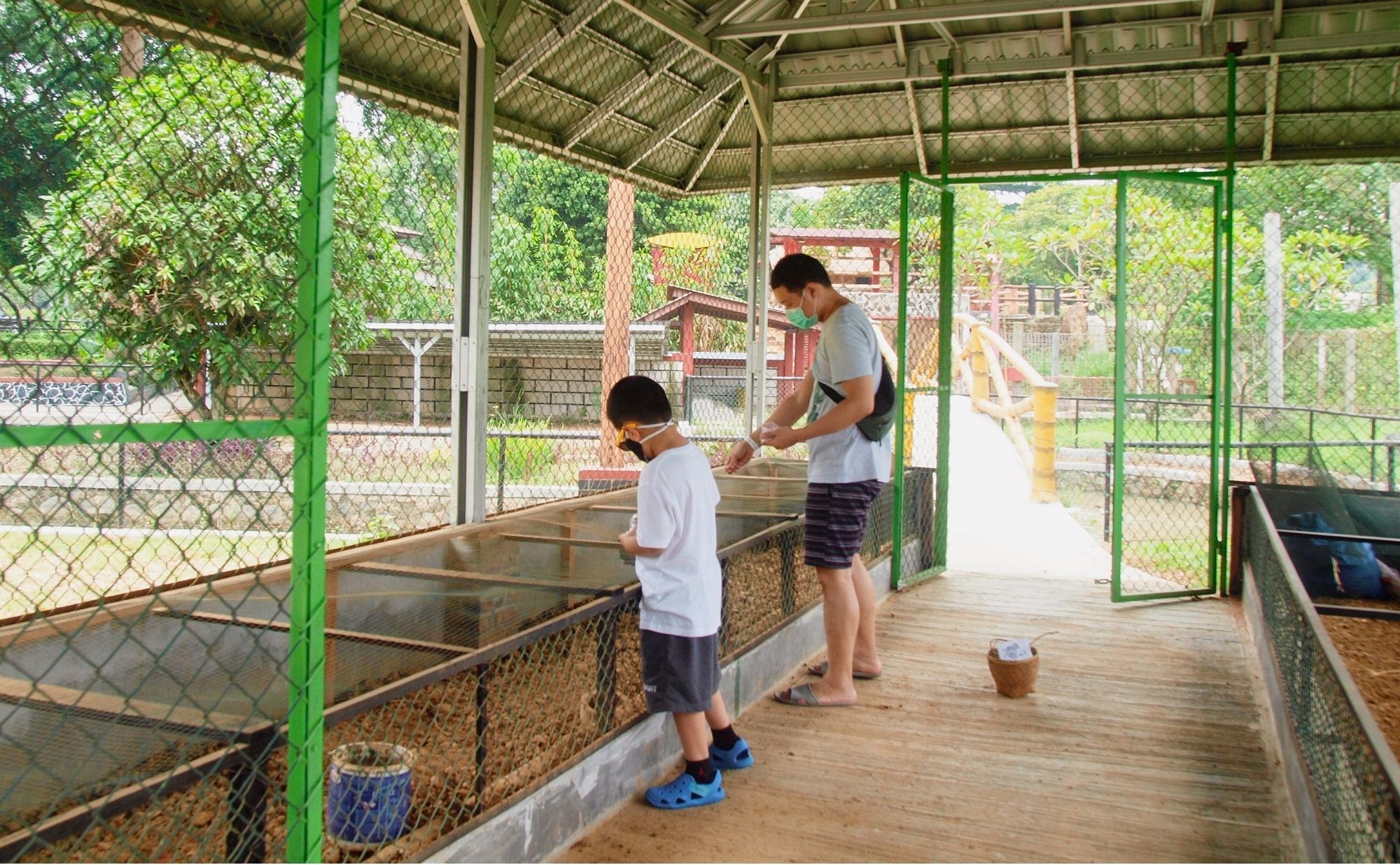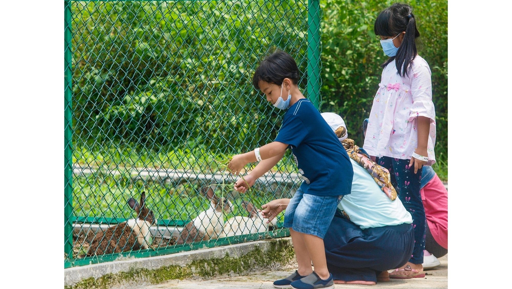 Di Kampung Pelangi anak anak bisa berjalan-jalan melihat hewan ternak dan bisa memberi makan hewan ternak juga. Ada domba, kelinci, unggas, ikan, dan lain-lain.